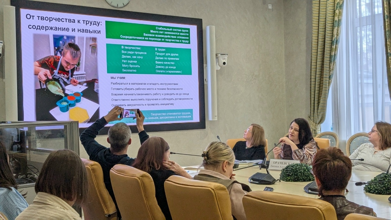 Мы поделились своими наработками в организации учебных мастерских для подростков и молодых людей с ментальными особенностями и рассказали о сильных сторонах и точках роста центра дневного пребывания и полезной занятости на базе "Гармонии".